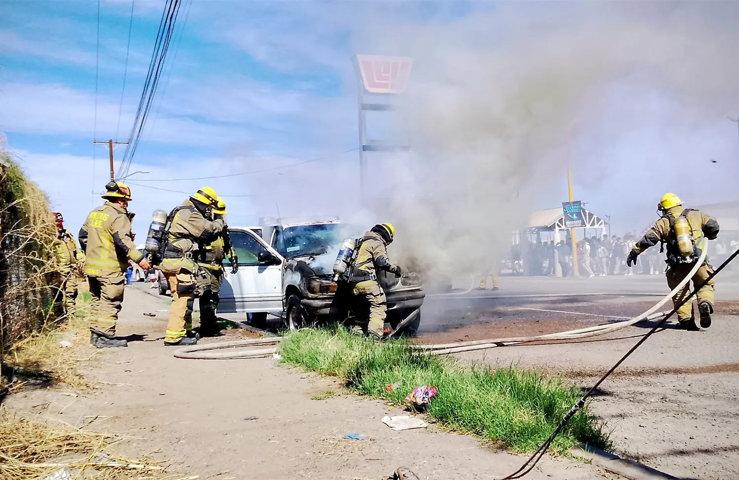 Derivado de un corto circuito, una camioneta fue arrasada por un voraz incendio, lo que movilizó a policías y elementos del Departamento de Bomberos.